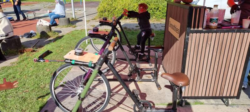springkussen, smoothie fietsen, schminken, grabbelton, snoepen/drinken, quiz over energiegebruik. De dag is mogelijk gemaakt door financiële bijdragen van Unilever, Jos Scholman en Goudapot.
